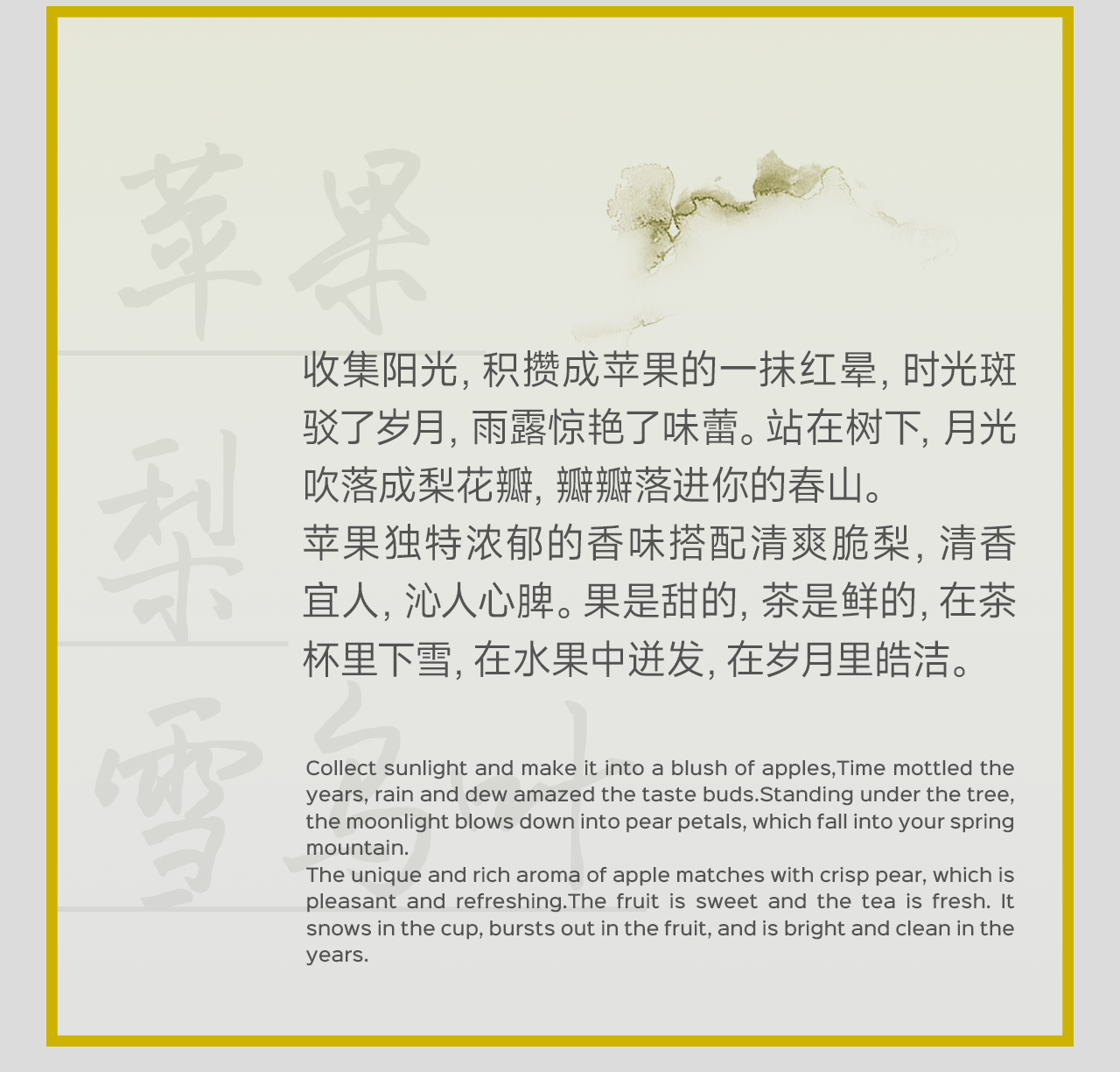 作為一家專業的餐飲用茶與解決方案服務機構,各類型的精制茶葉是幫利的產品核心。 這些茶葉產品包括中國傳統六大茶類及世界主要茶葉產區的茶葉,通過幫利專業技術人員的拼配與調配,這些茶葉產品被制作成包括餐飲用茶、袋泡茶、花果茶、三角茶包、功夫茶等相關產品面向連鎖茶飲、咖啡、中餐、西式快餐、火鍋,以及各類型含茶瓶裝飲料,出現在各類型生活場景中...